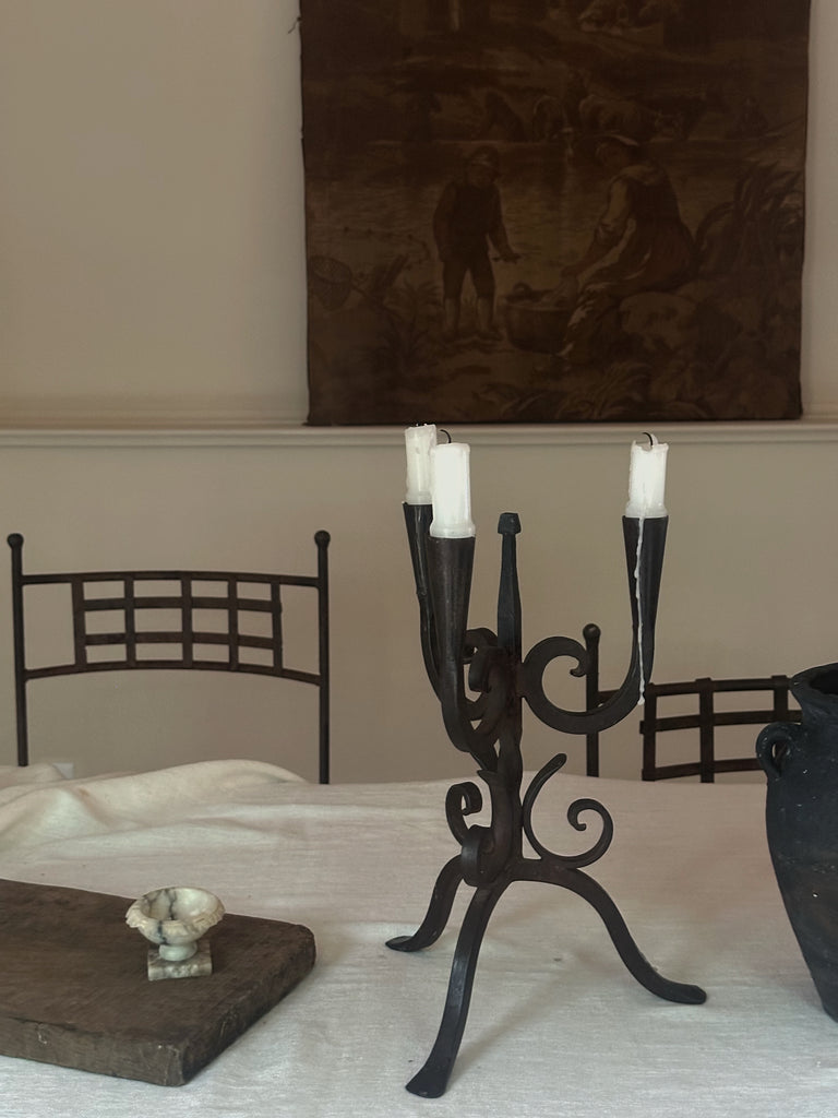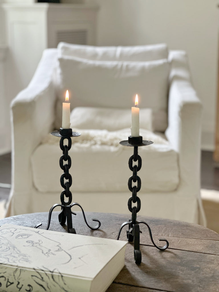 Pair of Vintage Wrought Iron Chain Candlesticks