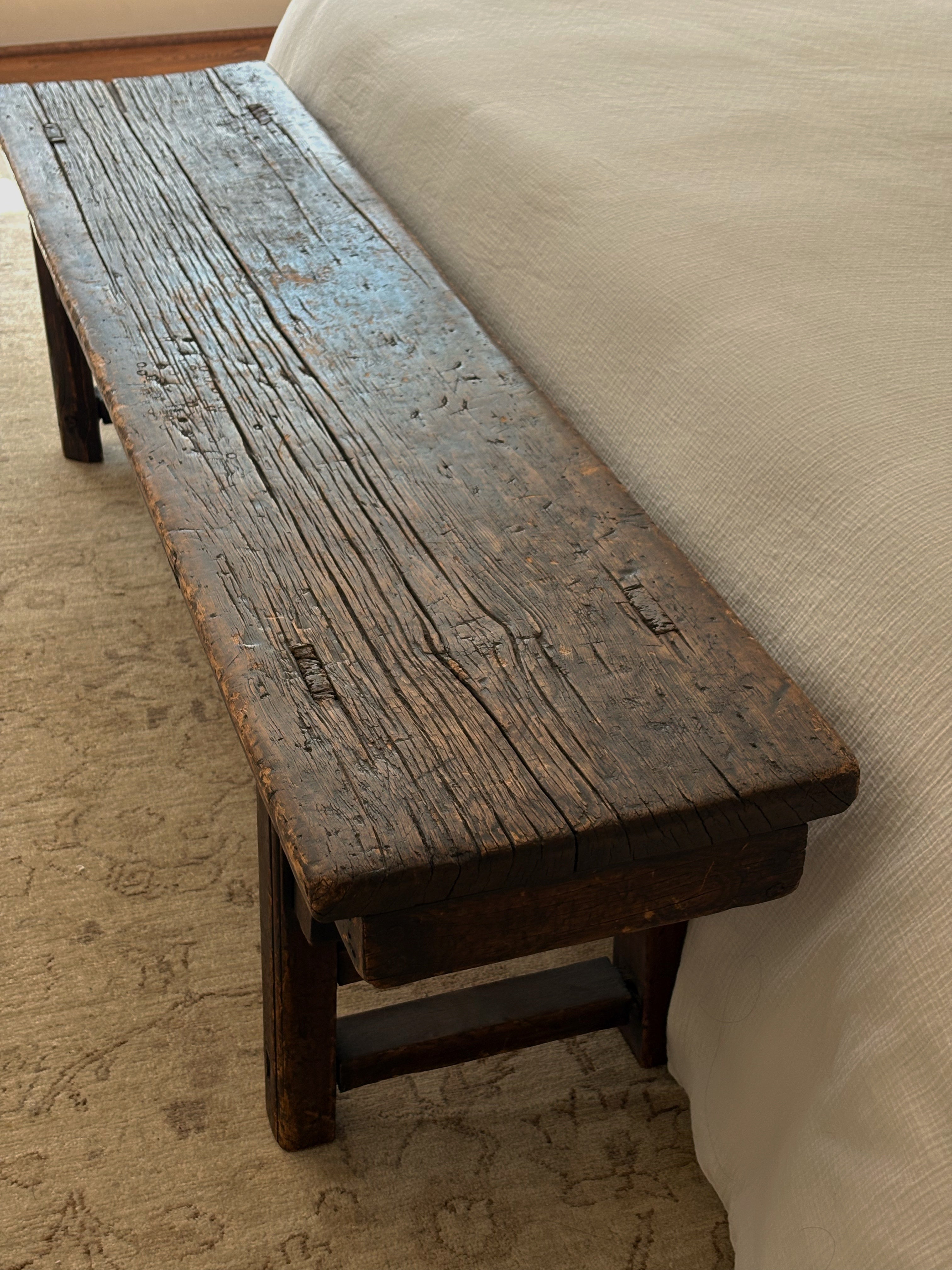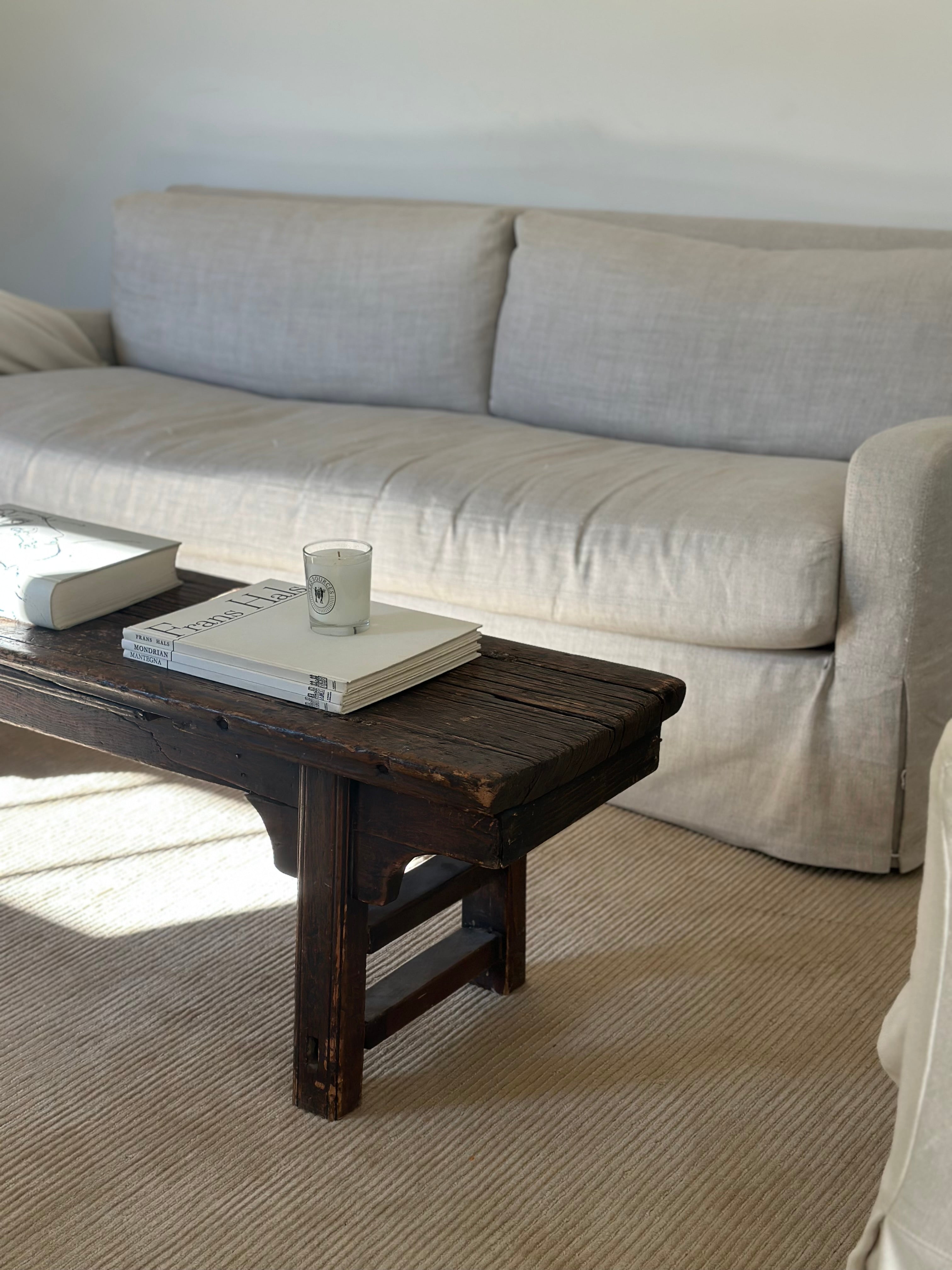 What makes this one particularly rare is its substantial size. Pieces of this kind are often much narrower and shorter, but this one stretches generously -- long enough to hold its own in a large space.