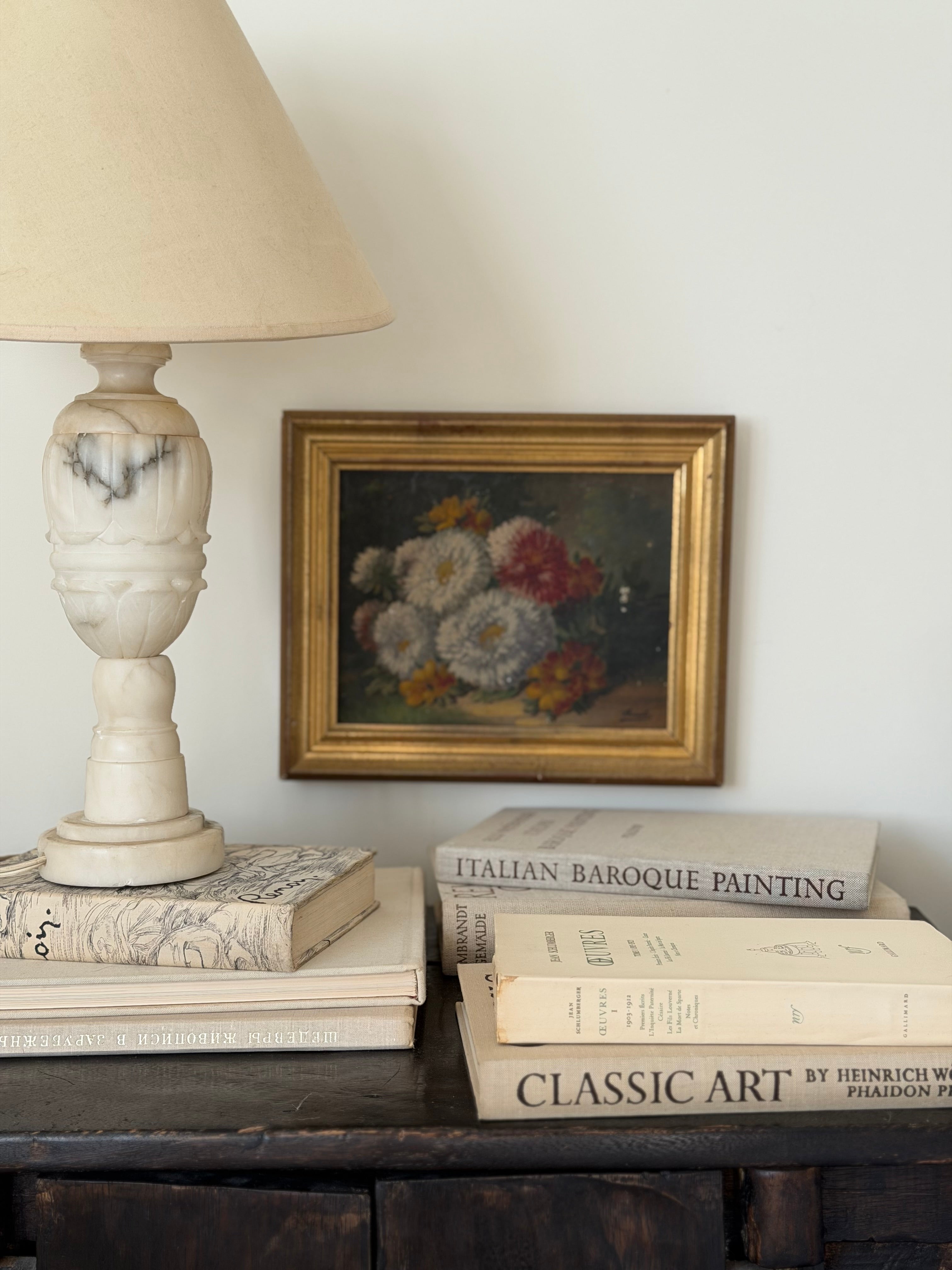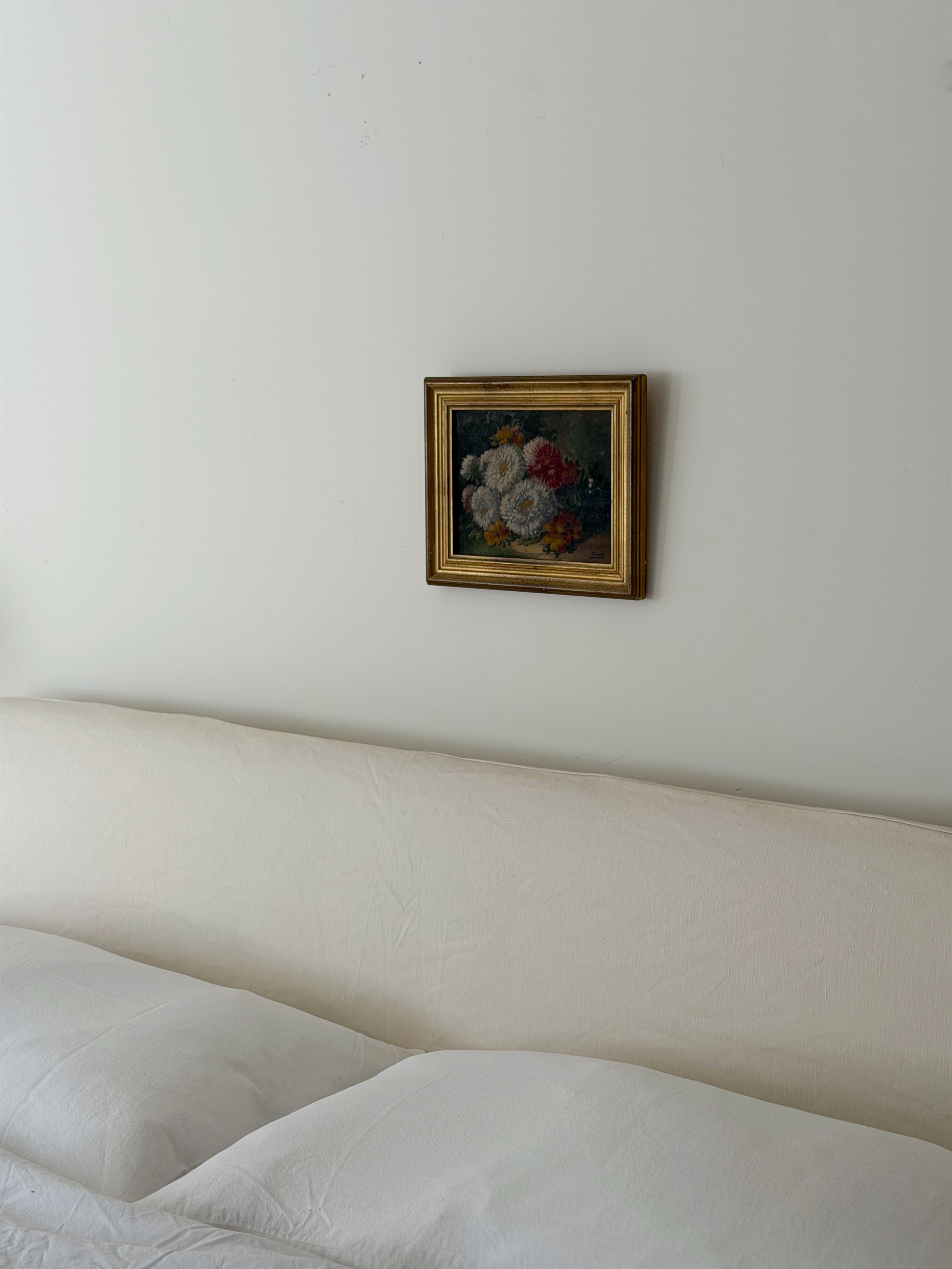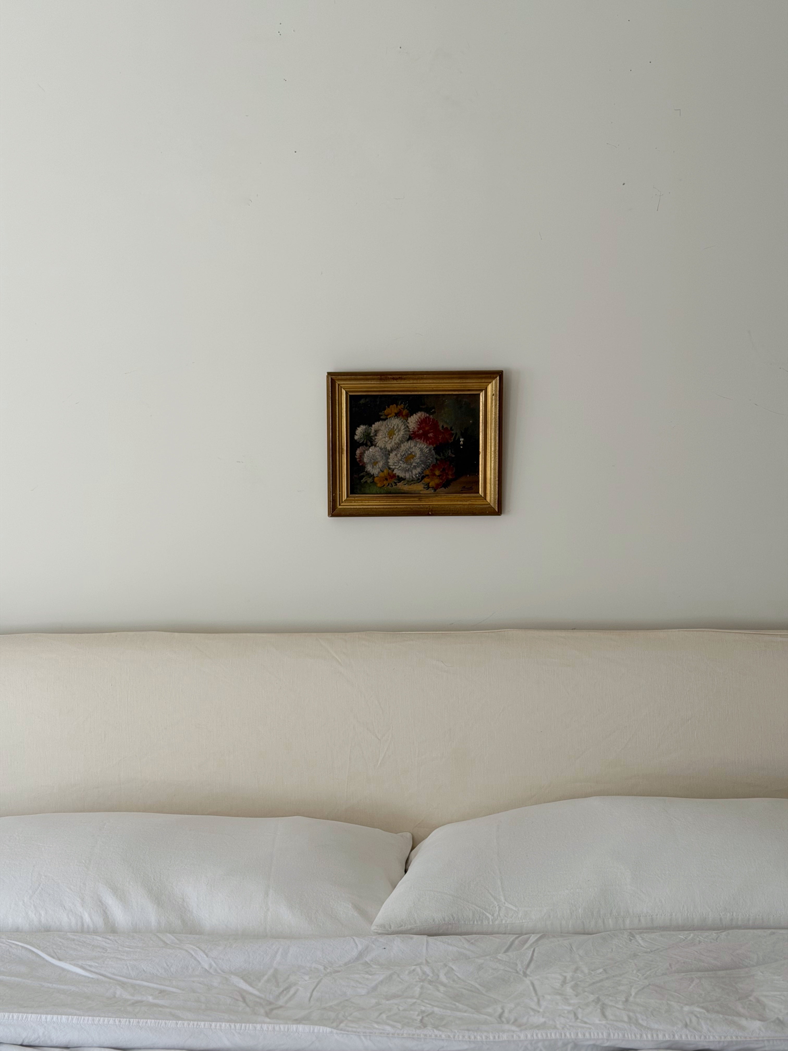 Signed at the base and set in a period frame with natural age patina. The scale makes it especially versatile — pieces like this are surprisingly hard to find, and they add a quiet, thoughtful presence to a space without overwhelming it. The scale is ideal for those subtle placements — slightly off-center above a bed, or near the bedside — where small art feels the most personal.