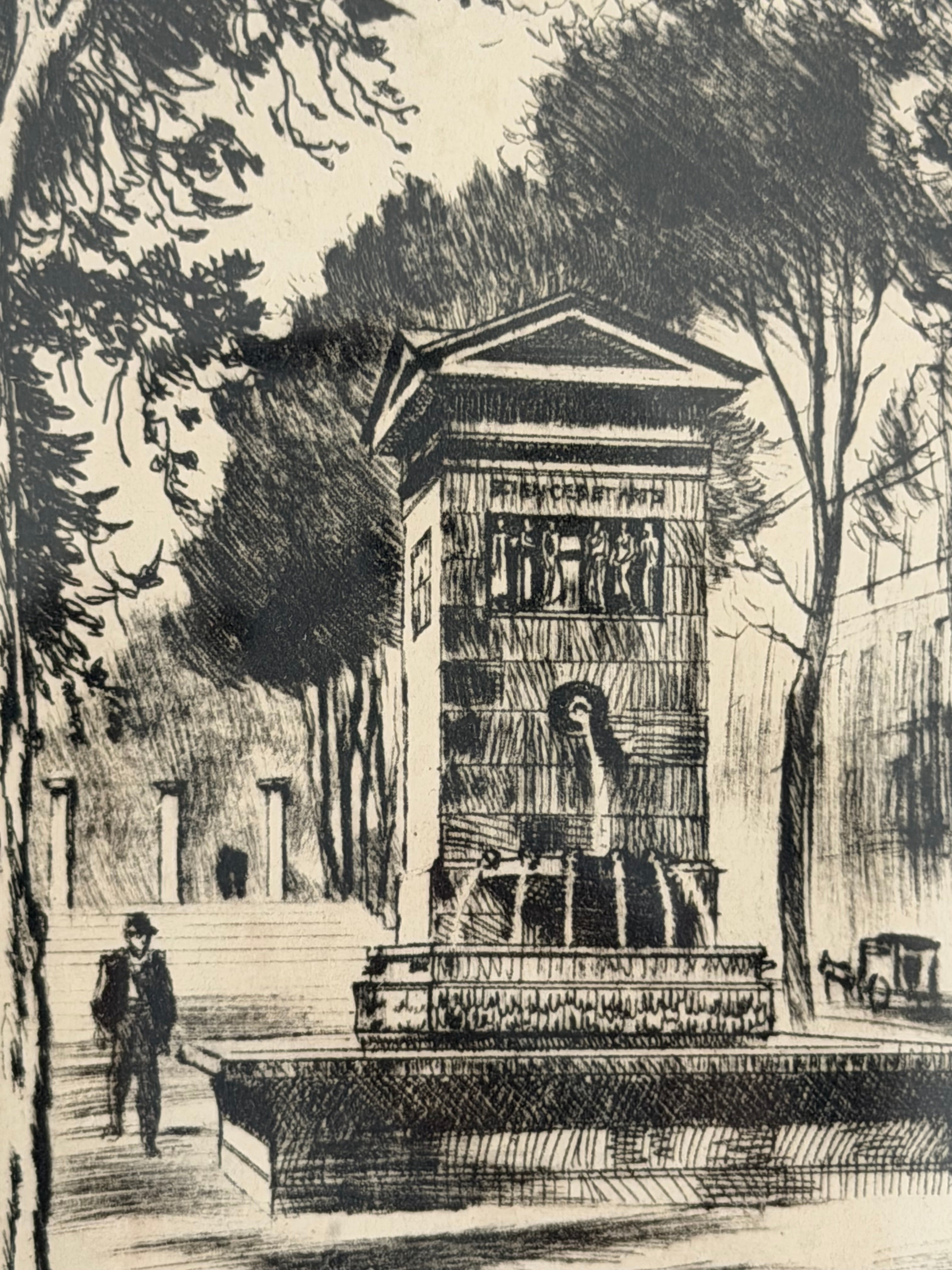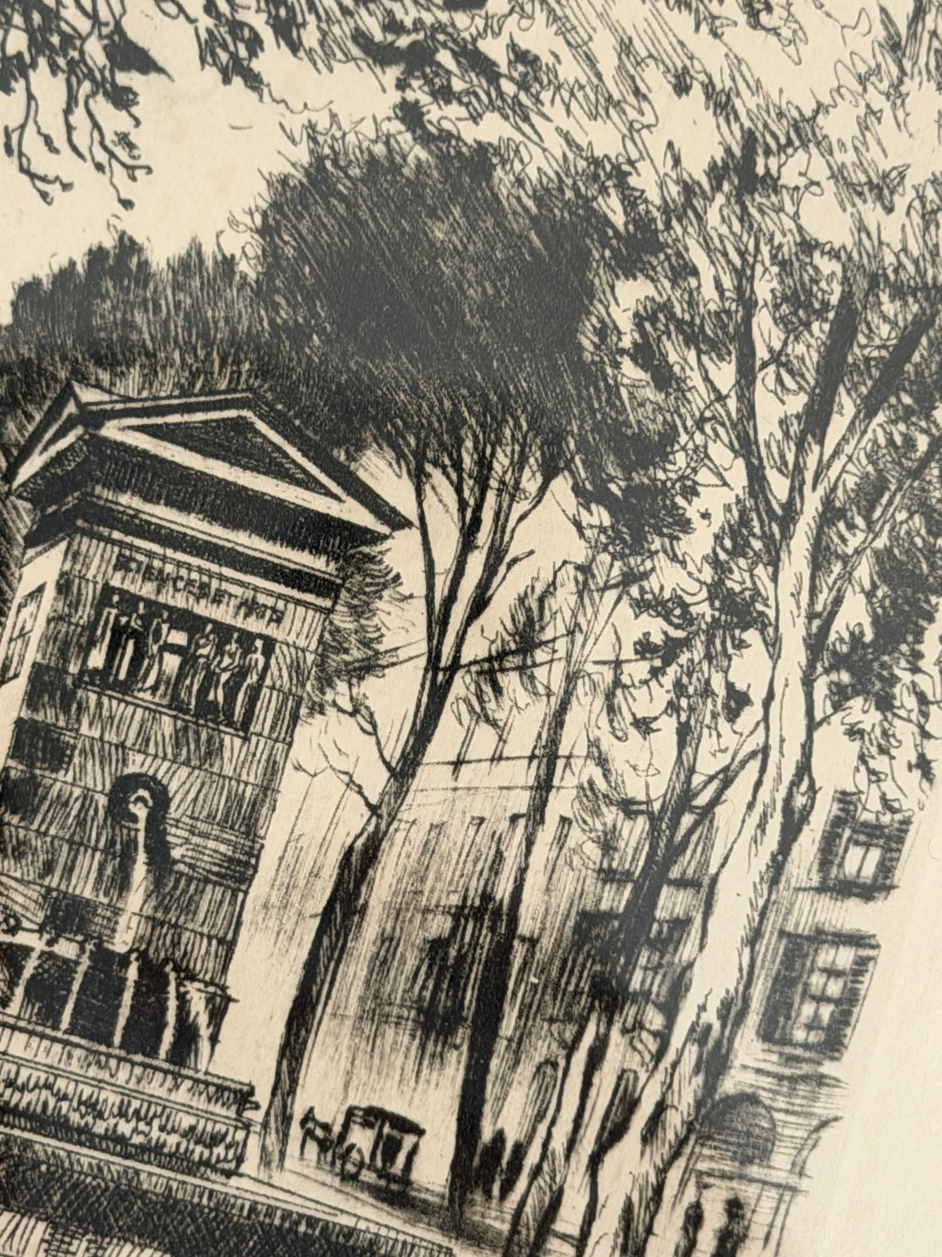 This work is a printed reproduction after the art of Georges Émile Capon (1890–1980), a French painter and printmaker known for his engraved views of Parisian fountains and parks that celebrated everyday French life .
