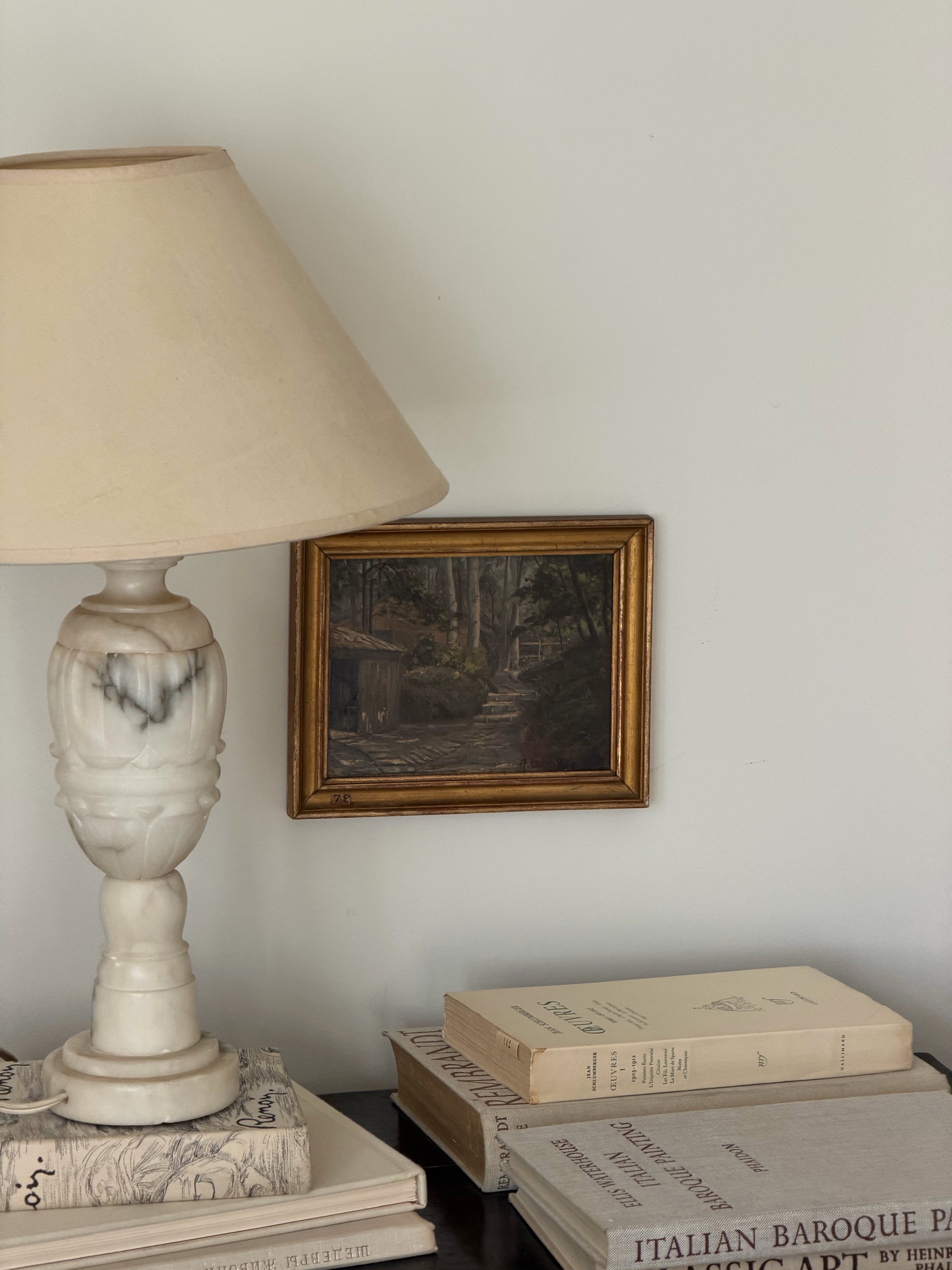 The scale makes it especially suited to intimate placement — leaned on a shelf, layered into a small vignette, or hung slightly off-center above a bedside. A quiet, thoughtful piece that brings depth without asking for attention.
