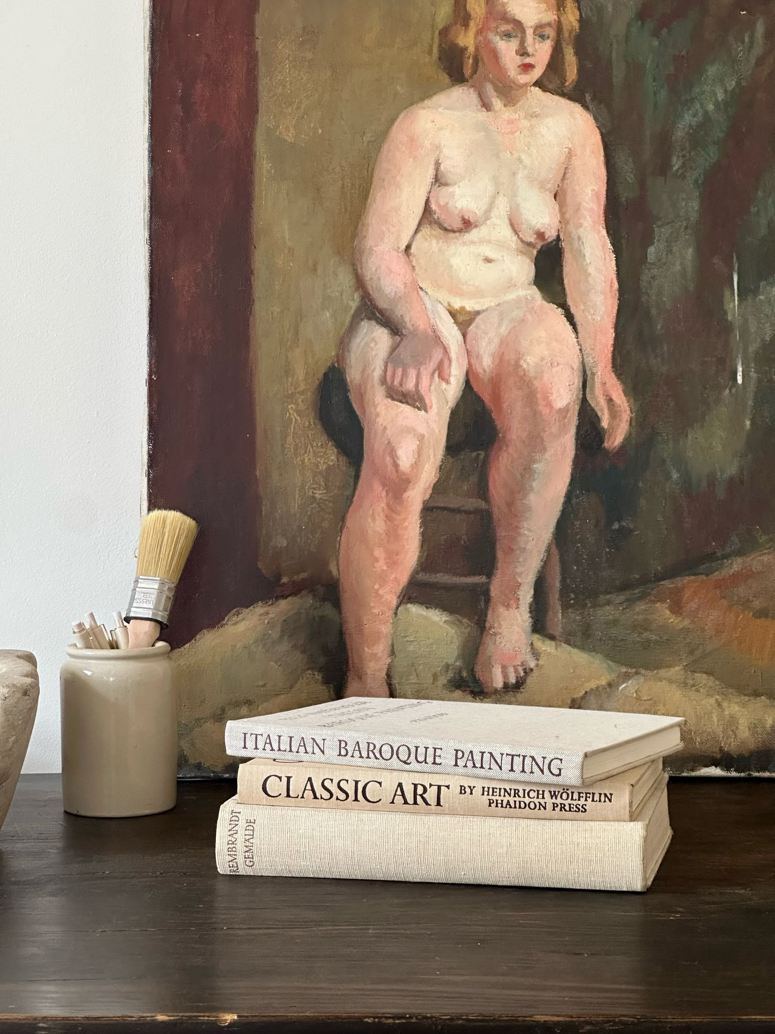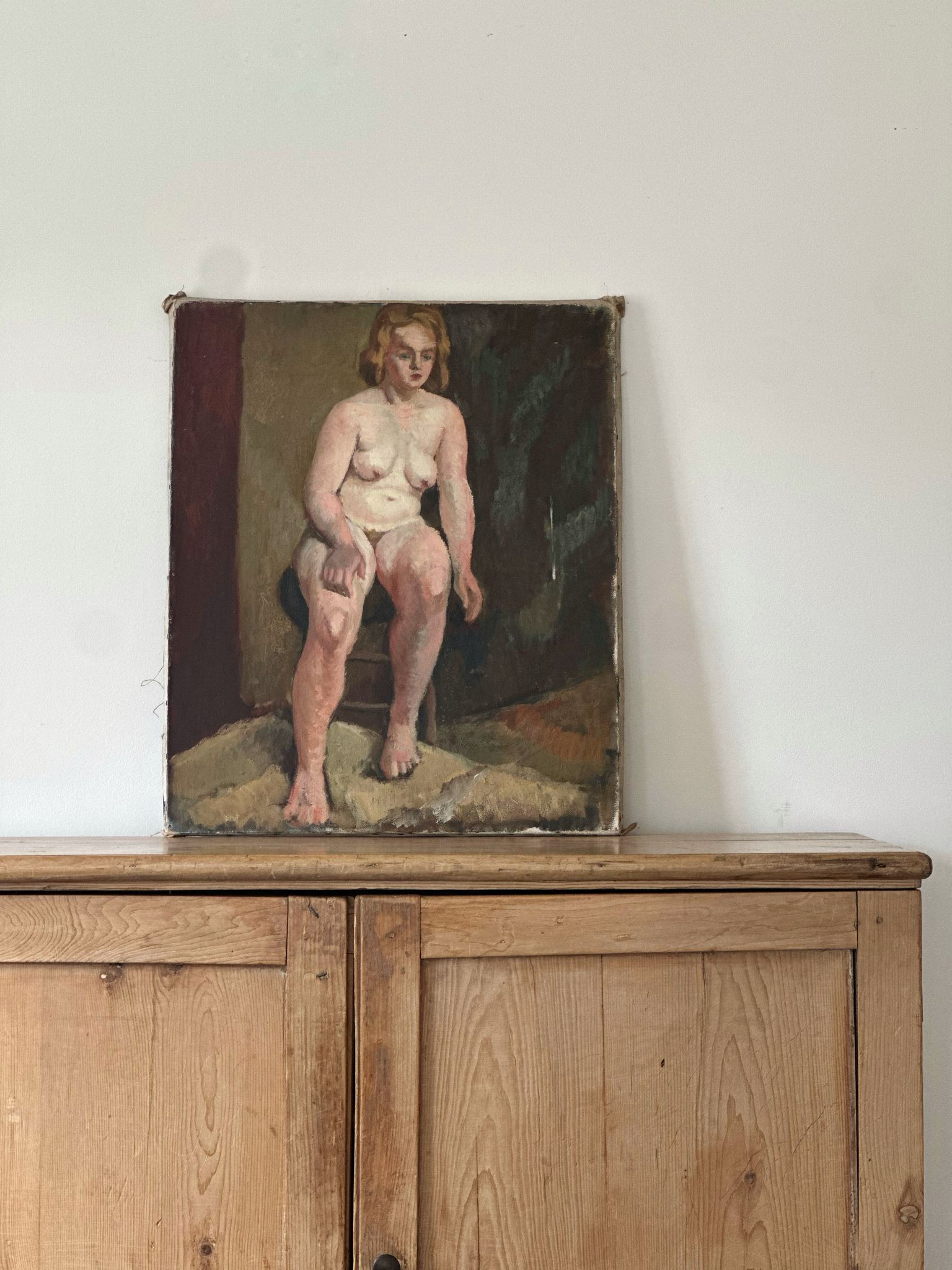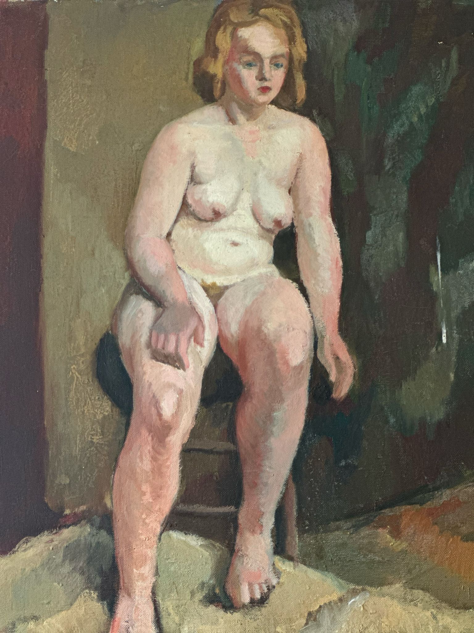 A quiet, painterly study of a seated figure, The Margaux carries a soft, timeworn beauty. Rendered in muted tones of clay, rose, and olive, she captures the human form in a way that feels both raw and tender—unposed, unguarded, and quietly alive.