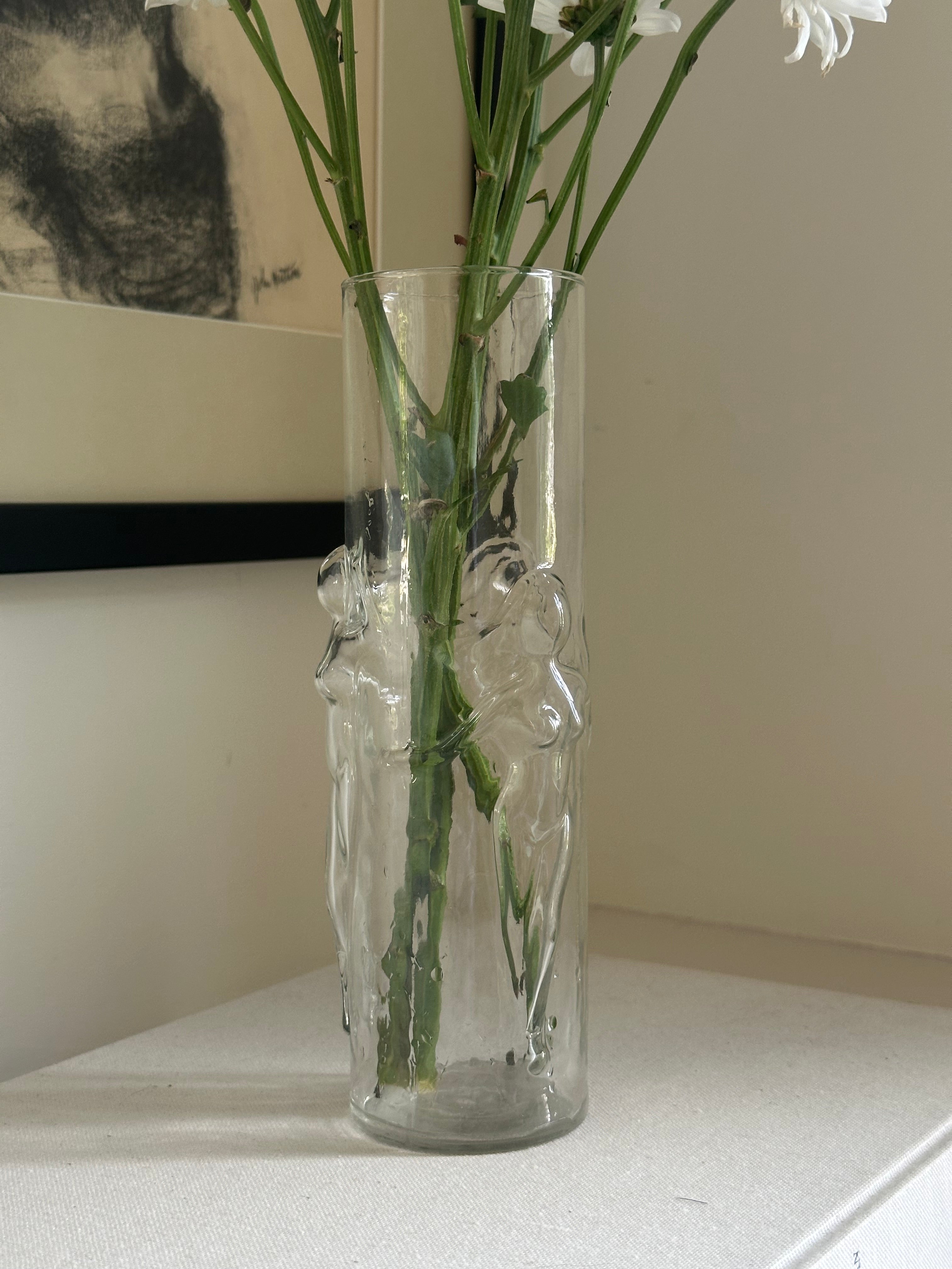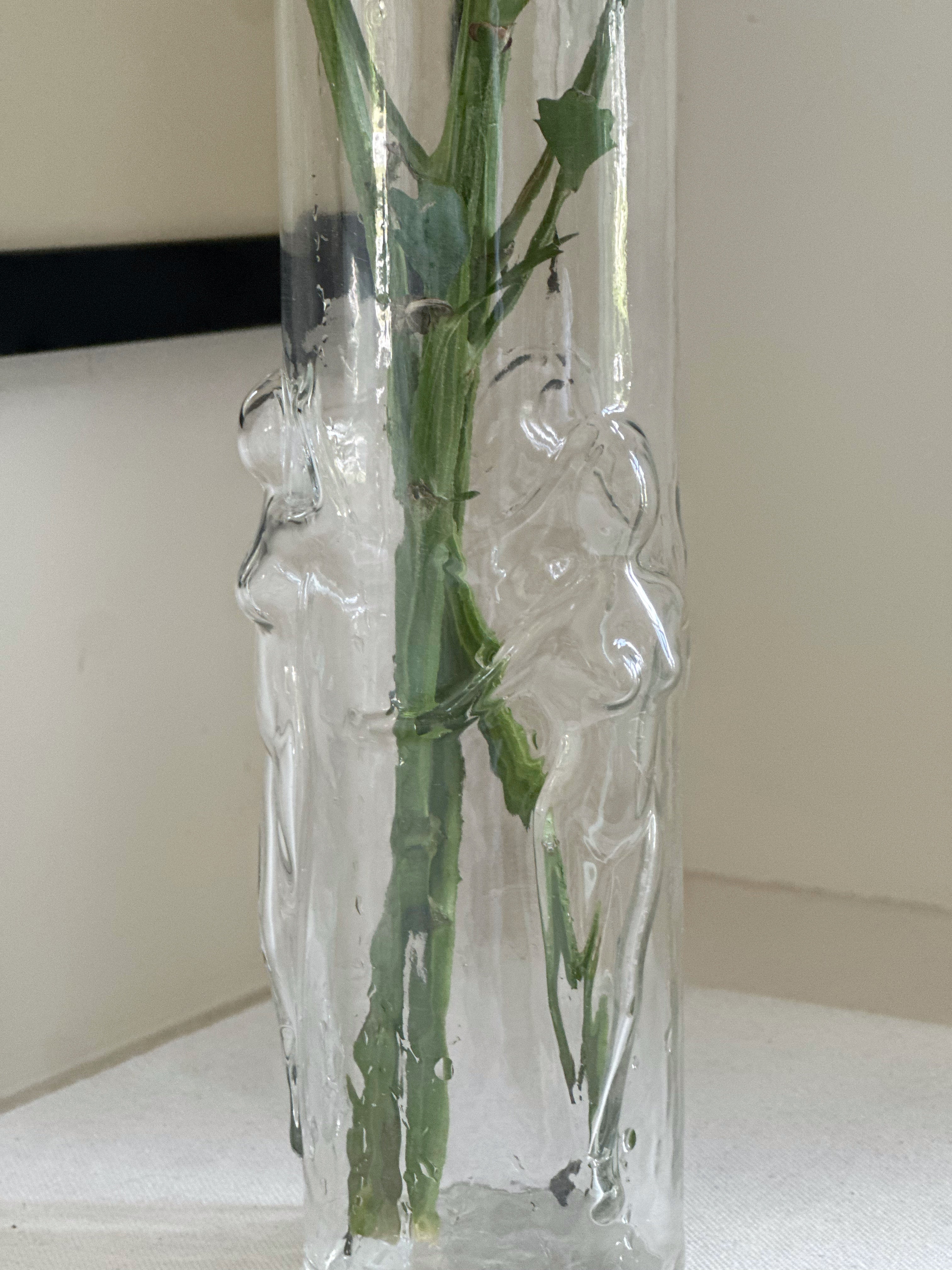 This vintage Libbey La Femme glass, sometimes called “Dancing Nudes,” feels like a little piece of sculpture. Embossed figures circle gracefully around the surface, capturing movement and elegance in glass. Originally made as a cooler or highball, I think it makes such a striking vase—just the right size for a few stems or one beautiful bloom.